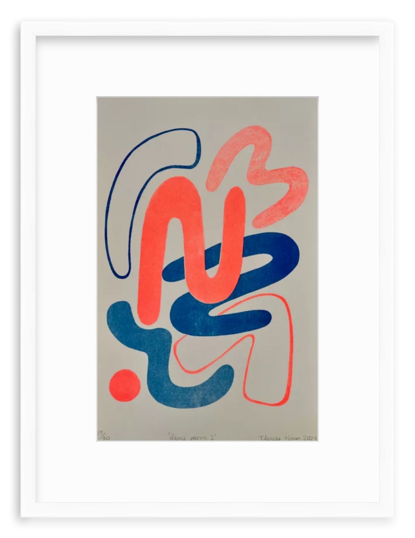 Theresa Hong is an abstract painter and printmaker living and working in the San Francisco Bay Area. She attended Emory University where she studied Psychology and Visual Arts and earned a masters degree in Art Therapy and Creativity Development at Pratt Institute. Her work explores movement and lively color interactions represented in abstract forms. The process comes through to Theresa as a continuous stream of thought, each shape informing the next. Theresa finds solace within her busy life through the art making process. Her art therapy background informs her open-minded and intuitive approach to creating. She believes in the healing power of art and the importance of a creative practice for all individuals. Her artwork is about motherhood, curiosity, and her own self-expression and continual creative growth. Theresa currently works as an art therapist in schools and mental health treatment centers.