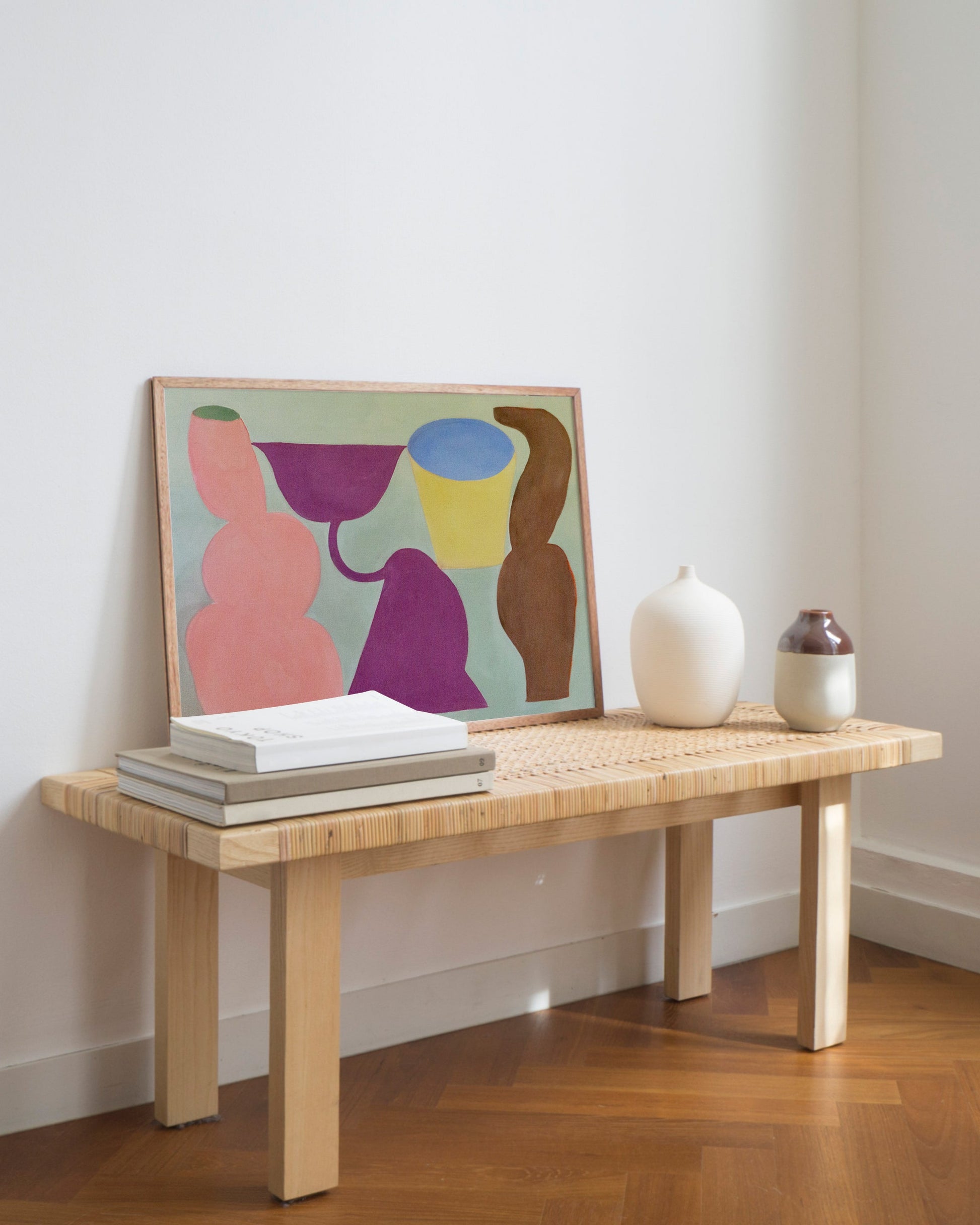 What the artist saysMy latest body of work draws on the language of still life and figure, the abstract shapes in my compositions suggestive of object and body. These paintings explore the relationships between these forms as they touch, support, and press against each other.