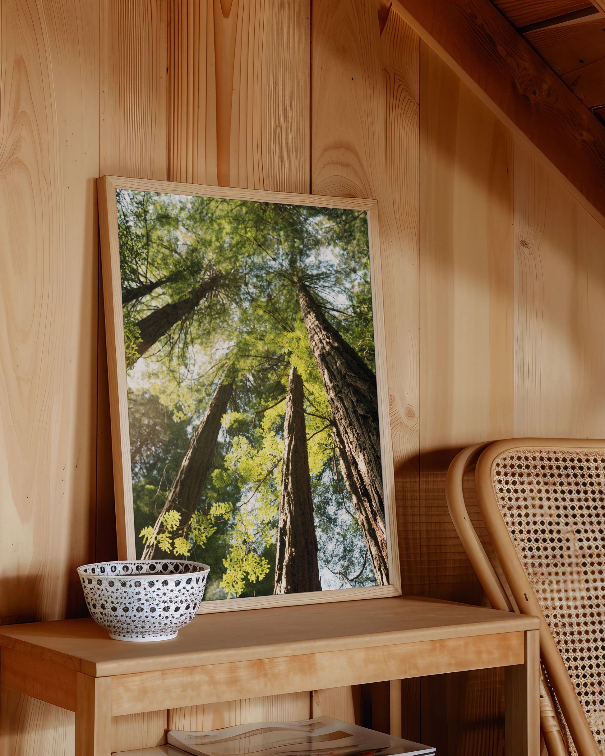 Where we hang itHang this forest scene as the focal point in any room to enjoy its graphic power.